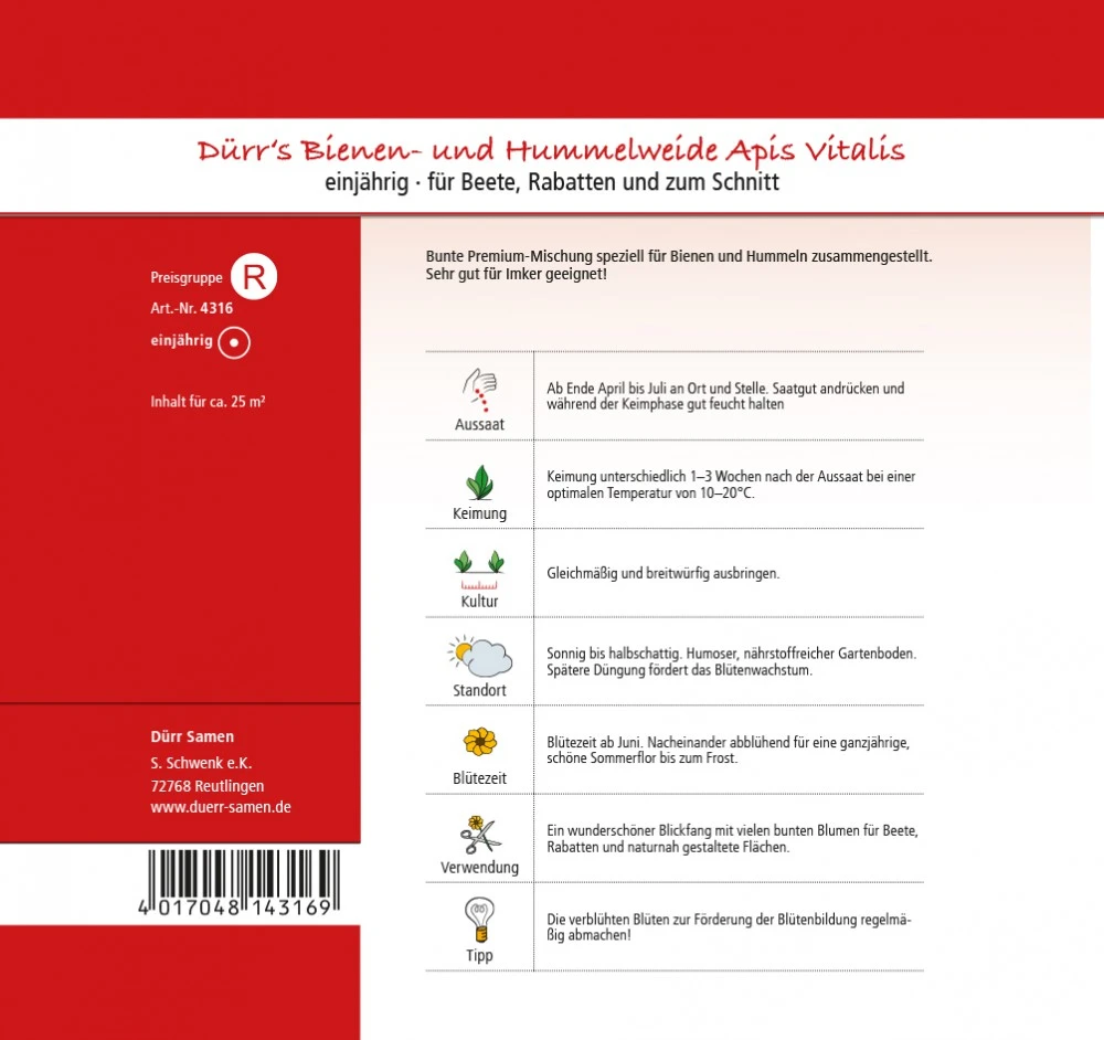 Bunte Premium-Mischung speziell für Bienen und Hummeln zusammengestellt. Sehr gut für Imker geeignet!