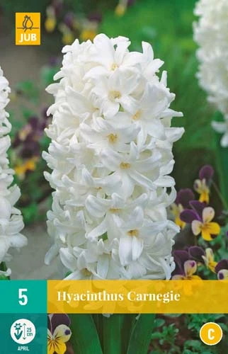 Carnegie ist eine starke weiße Hyazinthe. Sie lässt sich gut mit anderen Zwiebelgewächsen wie Anemone blanda Blue Shades und verschiedenen Tulpensorten kombinieren. Für sowohl im Beet als auch in Töpfen auf der Terrasse oder dem Balkon. Duftend.