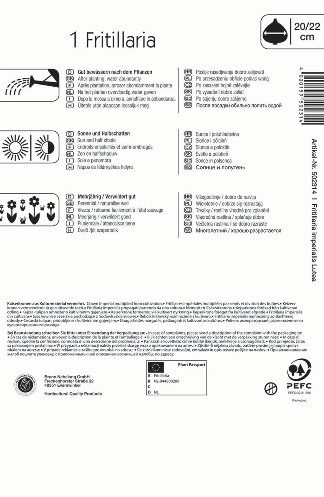 Die Kaiserkrone ‚Lutea‘ wird ca. 80 groß und wirkt in Gruppen gepflanzt noch imposanter. Von April bis Mai entfalten sich die großen, glockig geformten Einzelblüten. Sie sind strahlend gelb gefärbt und versprühen einen frühsommerlichen Flair. ‚Lutea‘ fühlt sich an sonnigen Standorten besonders wohl und hat die ungewöhnliche Eigenschaft, Wühlmäuse und Maulwürfe zu vertreiben.