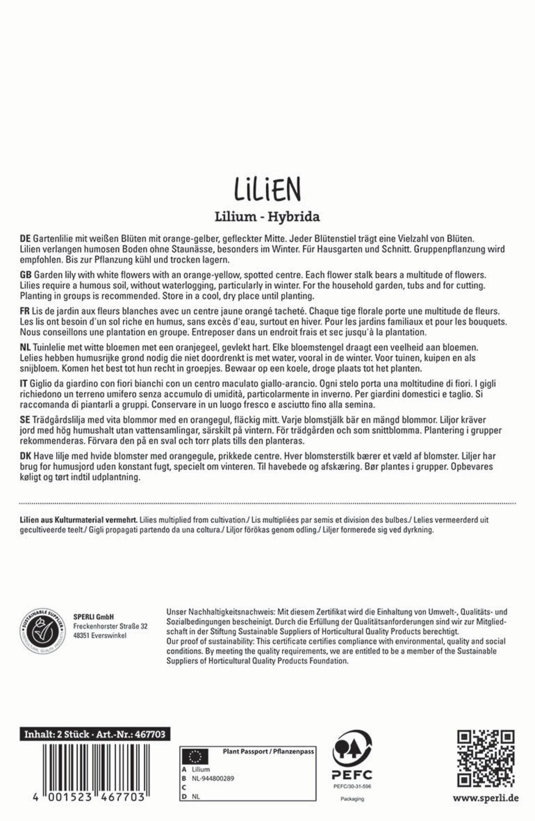 Diese Gartenlilie erfreut jedes Gärtnerherz: Mit ihrem zauberhaften Duft und dem edlen Aussehen, ist die Lilie ‚Lady Alice‘ ein tolles Highlight in Deinem Garten: Die weißen Blüten zeigen eine orange-gelbe, gefleckter Mitte. Bei der Sorte ‚Lady Alice‘ trägt jeder Blütenstiel eine Vielzahl von Blüten. Im Juli und August kannst Du die Schönheiten bewundern. Diese sehen nicht nur attraktiv aus, sondern enthalten auch wertvollen Nektar und Pollen, die ein ideales Insektenfutter für Bienen und Co. ergeben. Als haltbare Schnittblume kannst Du die 1,20 m hohen Lilien schneiden und zu einem atemberaubenden Strauß zusammenfassen. Lagere die Blumenzwiebeln bis zu Pflanzung trocken und kühl. Besonders gut gedeihen die Gartenlilien in Gruppen gepflanzt in humosen Boden. Staunässe solltest Du vermeiden, vor allem im Winter.