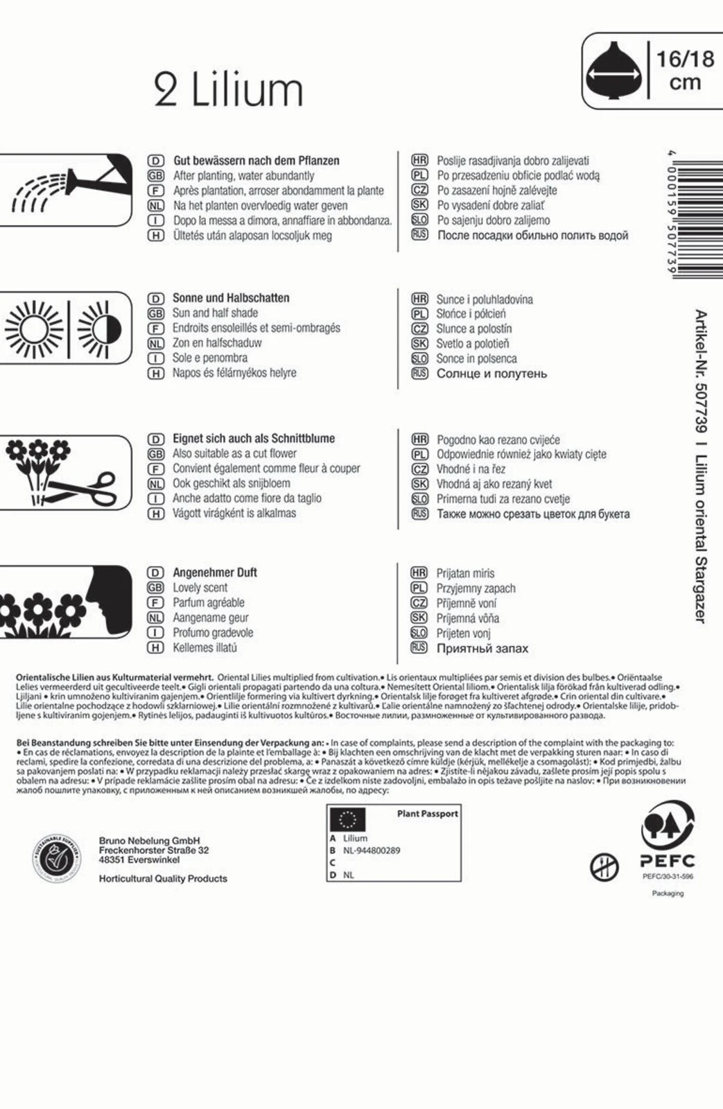 Die Oriental-Lilie ‚Stargazer‘ beeindruckt mit ihren großen sternförmigen Blüten, die eine intensive rosarote Farbe haben. Zudem zeichnen sie sich dadurch aus, dass sie von der Blütenmitte zum Rand hin immer heller werden. Sie hat starke Stängel und eignet sich dadurch ideal den Schnitt für attraktive Blumensträuße. Des Weiteren steht sie somit auch sehr stabil im Beet, wo sie eine Höhe von bis zu 90 cm erreichen kann. Die ‚Stargazer‘ betört außerdem mit einem angenehmen Duft, der auch Nützlinge anlockt.